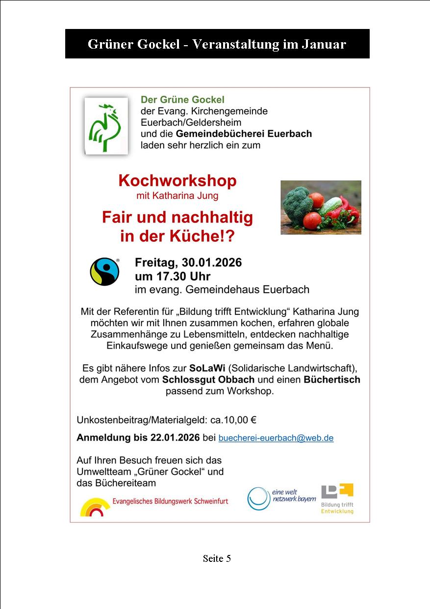Weitere Links zu Informationen: Umweltbericht 2022 zum grünen Gockel Euerbach Schöpfungleitlinien des Grünen Gockel Auftaktveranstaltung des Grünen Gockels in Euerbach - Geldersheim Bilderwettbewerb zum Grünen Gockel